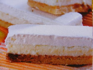 1 tojás, 2 tojásfehérje, 1 csipet só, 4 dkg búzaliszt, 2 dkg étkezési keményítő, 20 dkg áfonyakompót almaszörppel, 1 tk. őrölt Bourbon vanília, 35 dkg túró, 4 lap fehér zselatin, 1,5 dl tejszín, vaj a formához